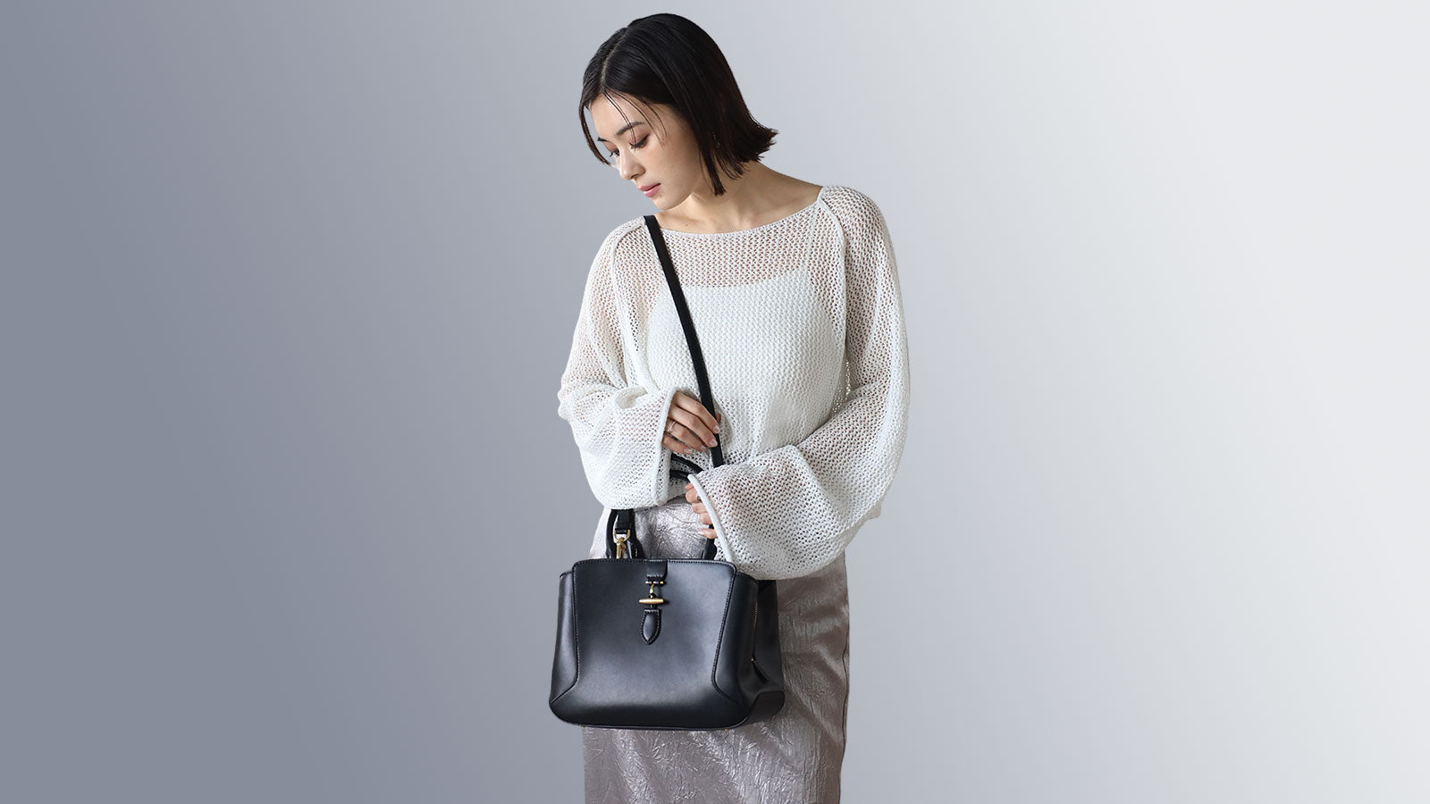 • 金具使いが上品なアクセントになっており通勤やオケージョンと幅広いコーディネートにも合う