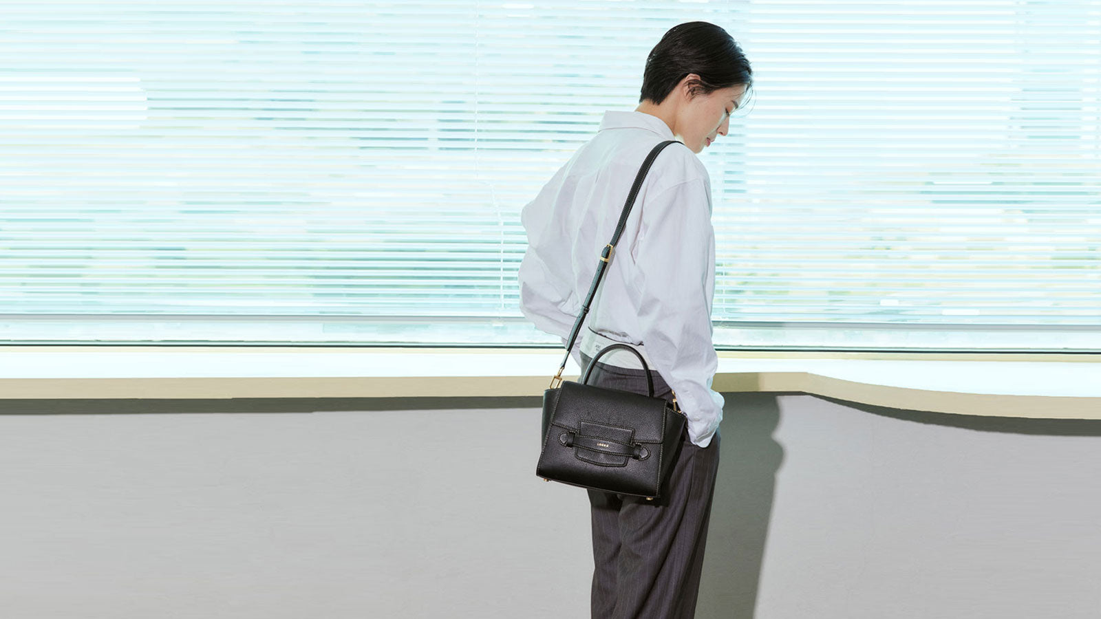 深受喜愛的經典挎包,採用防刮壓花牛皮。可拆卸肩帶使其可用作交叉包,磁鐵可將其安全存放。